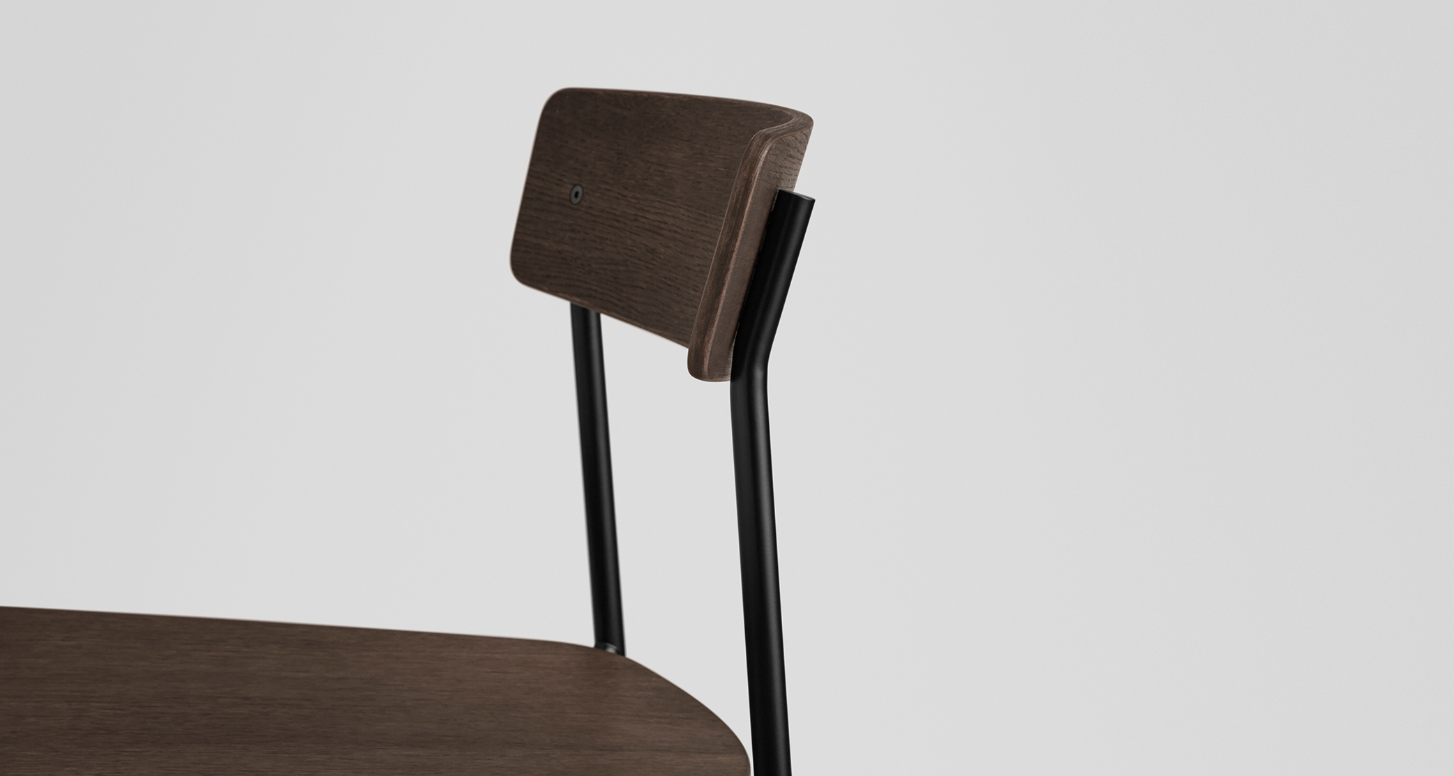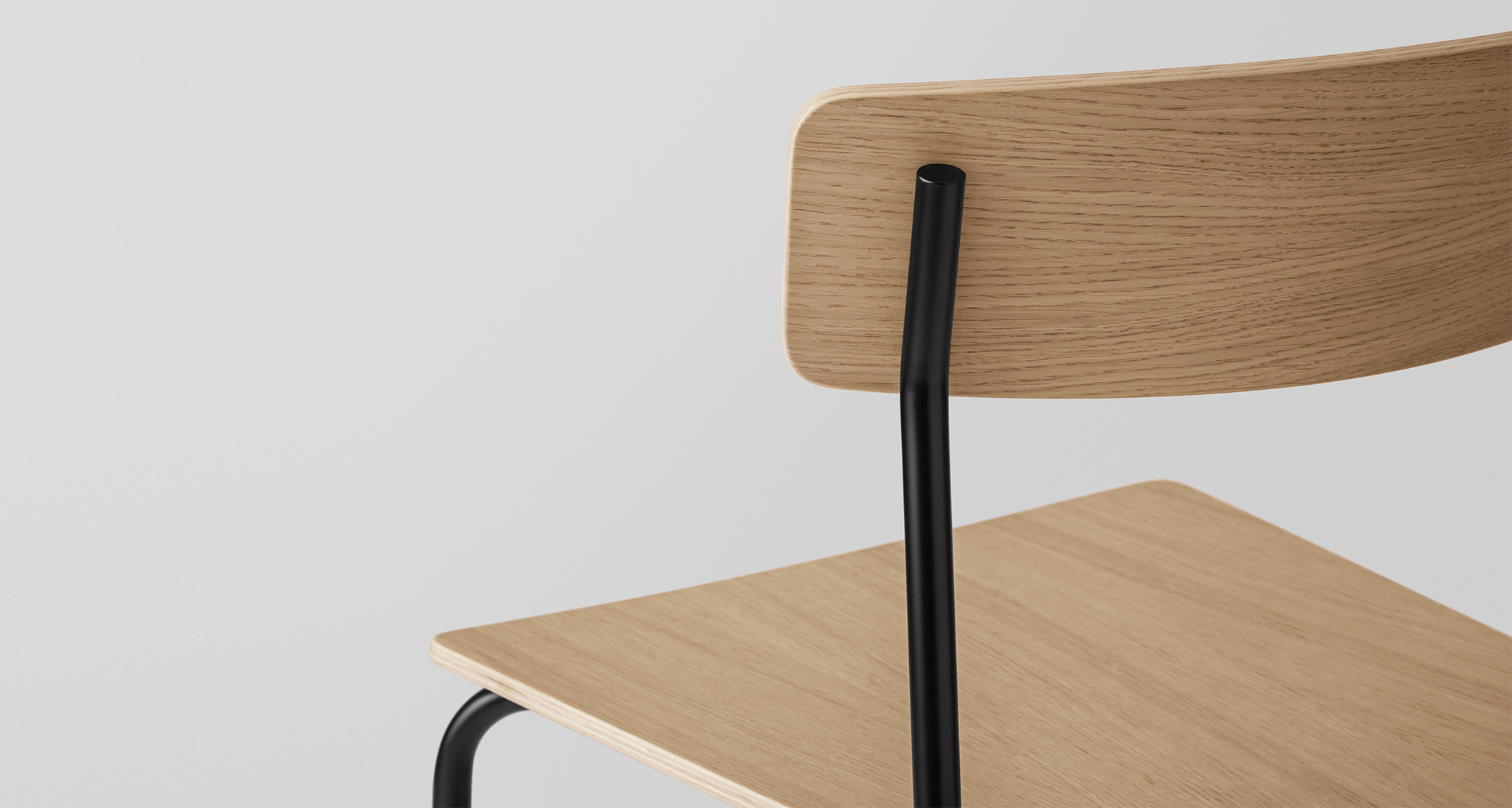 Cross Chair Tube shares the same lightweight visual language and assembly method with its predecessor, Cross Chair, but is materially distinct. Where Cross Chair features a frame of solid oak, Cross Chair Tube incorporates a frame made of recyclable high-pressure steel with a sturdy black powder coating that adds a graphic and elegant expression.