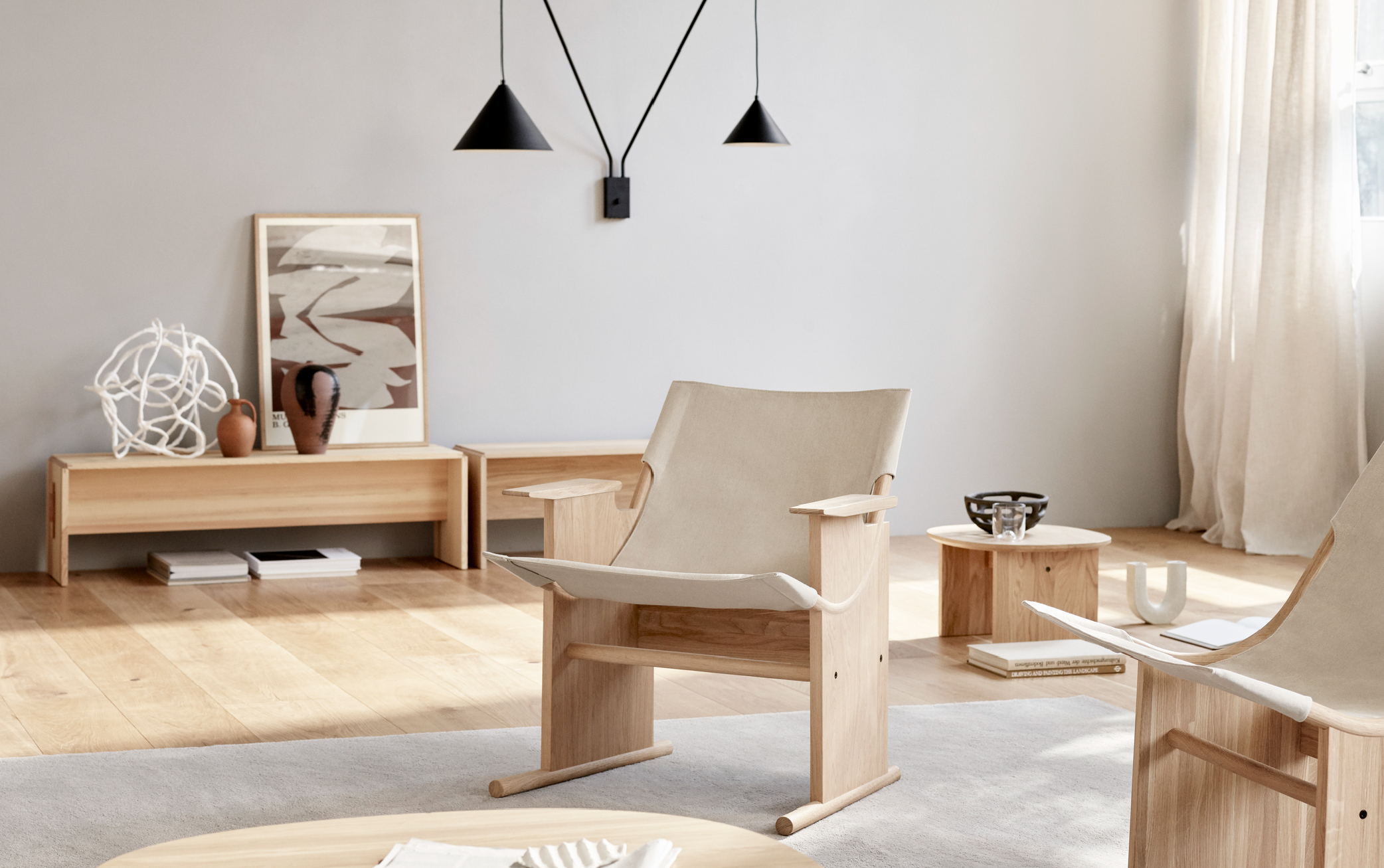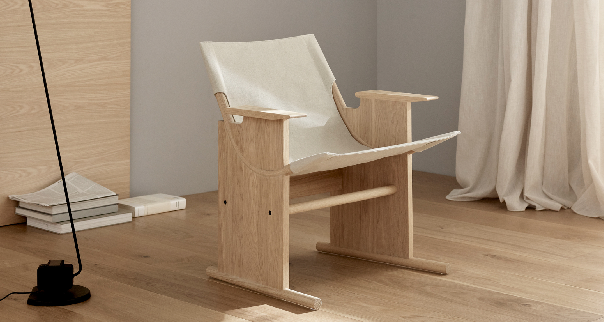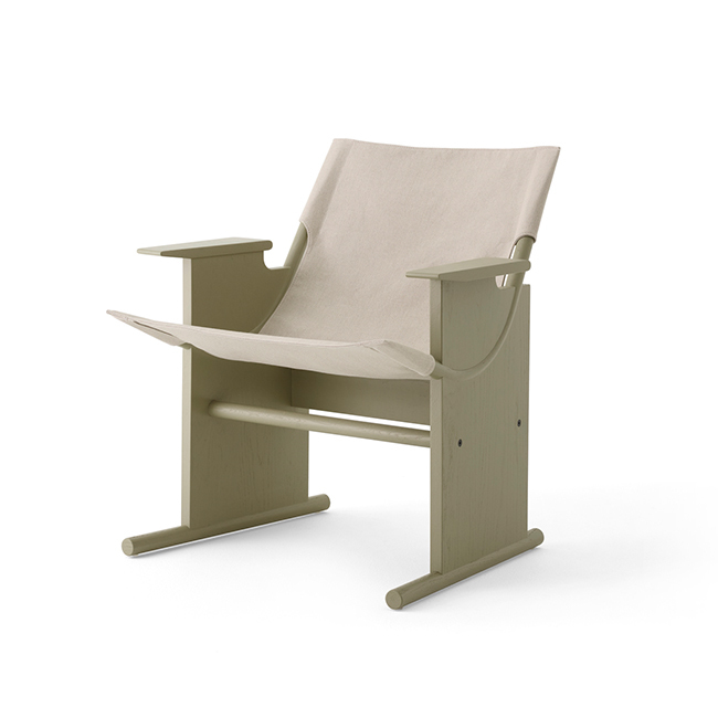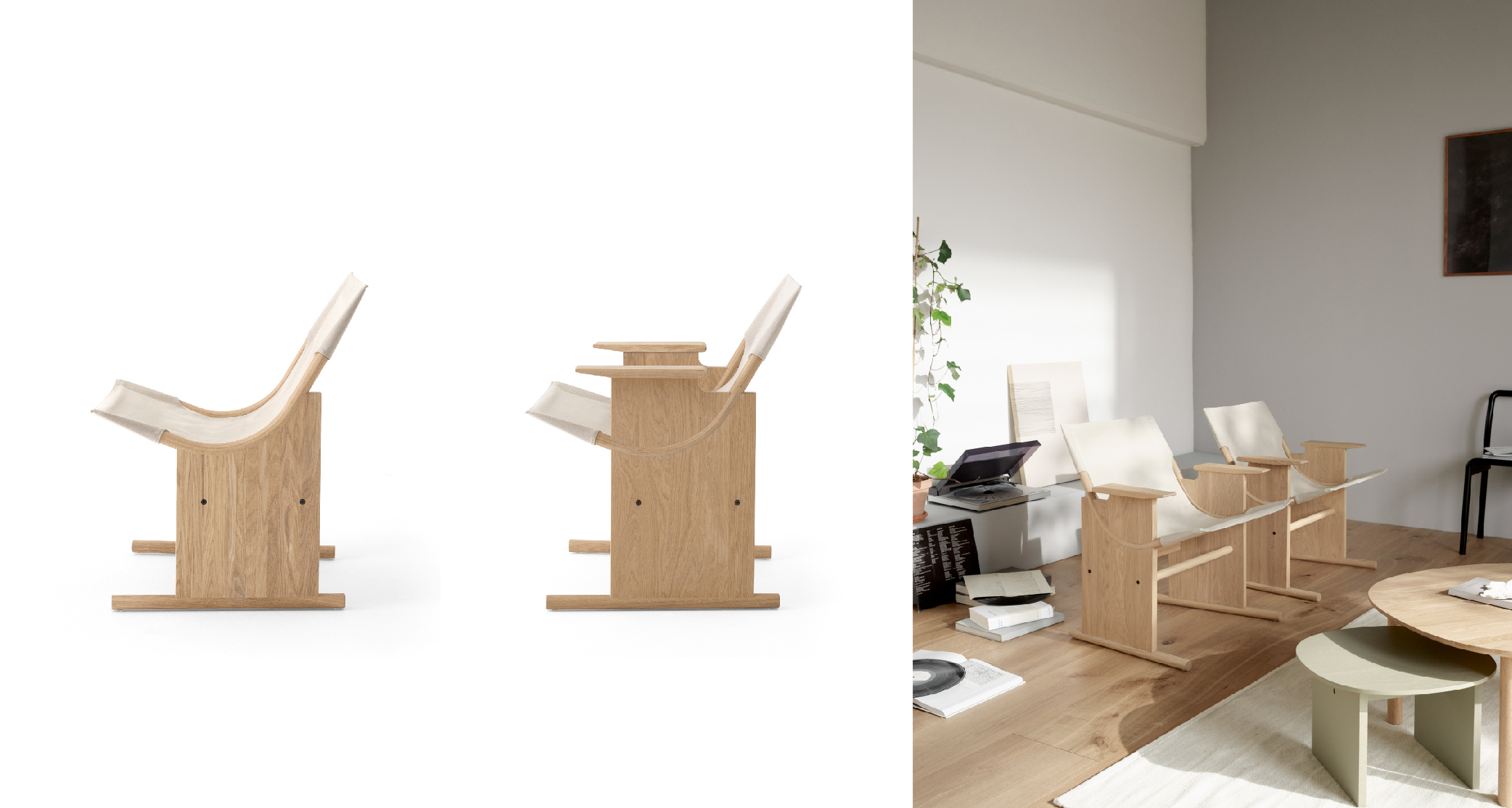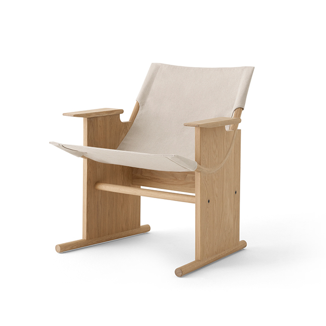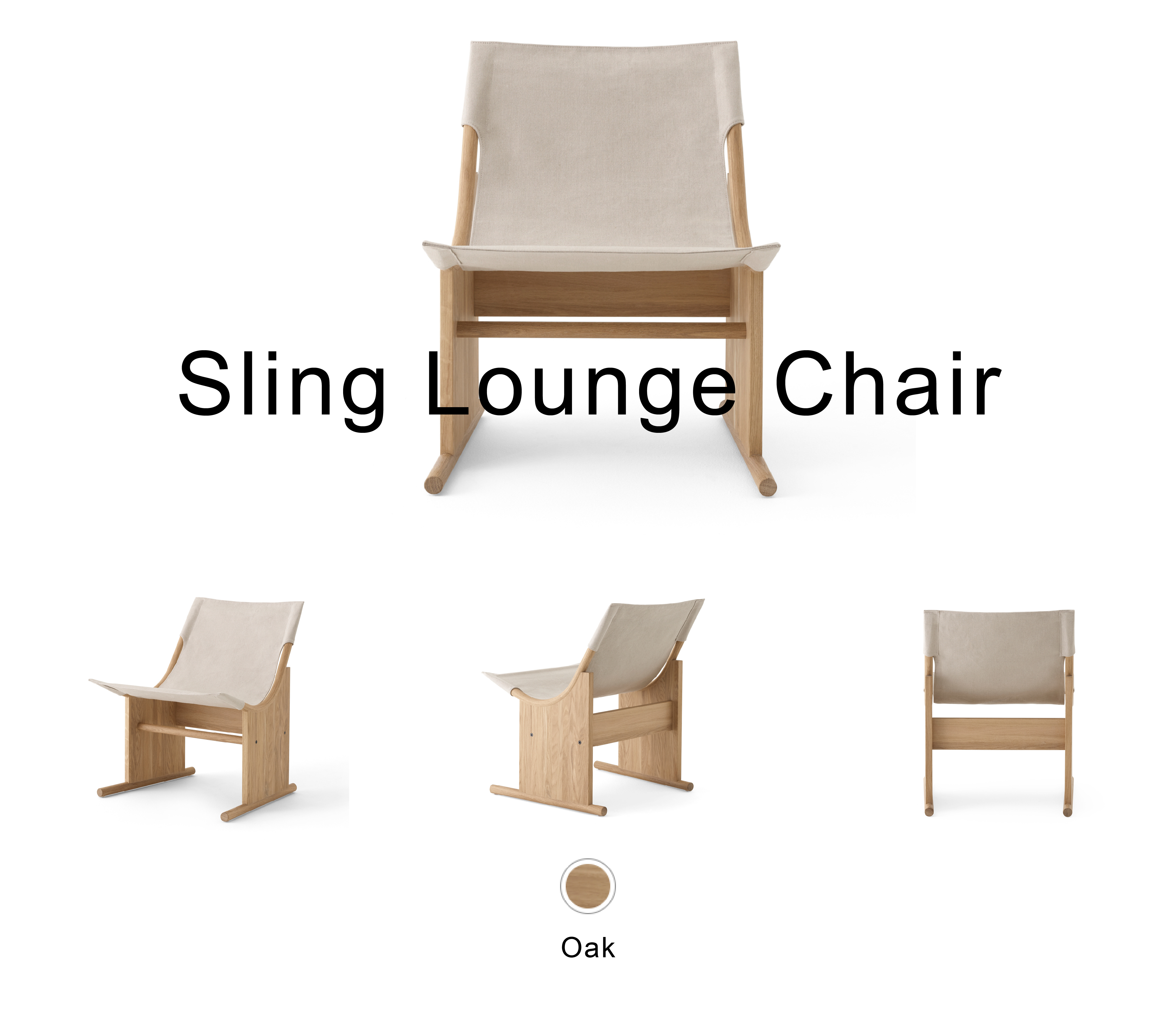 像在兩個實心橡木側面部件之間擺放了一個像吊床一樣的天然亞麻織物座椅,這設計代表了一種勇敢的嶄新型式。 憑藉其元素設計出傾斜的座椅位置和傾斜的織物座椅,Sling可以比作Marcel Breuer的Wassily椅子,但完全與眾不同且更輕巧。