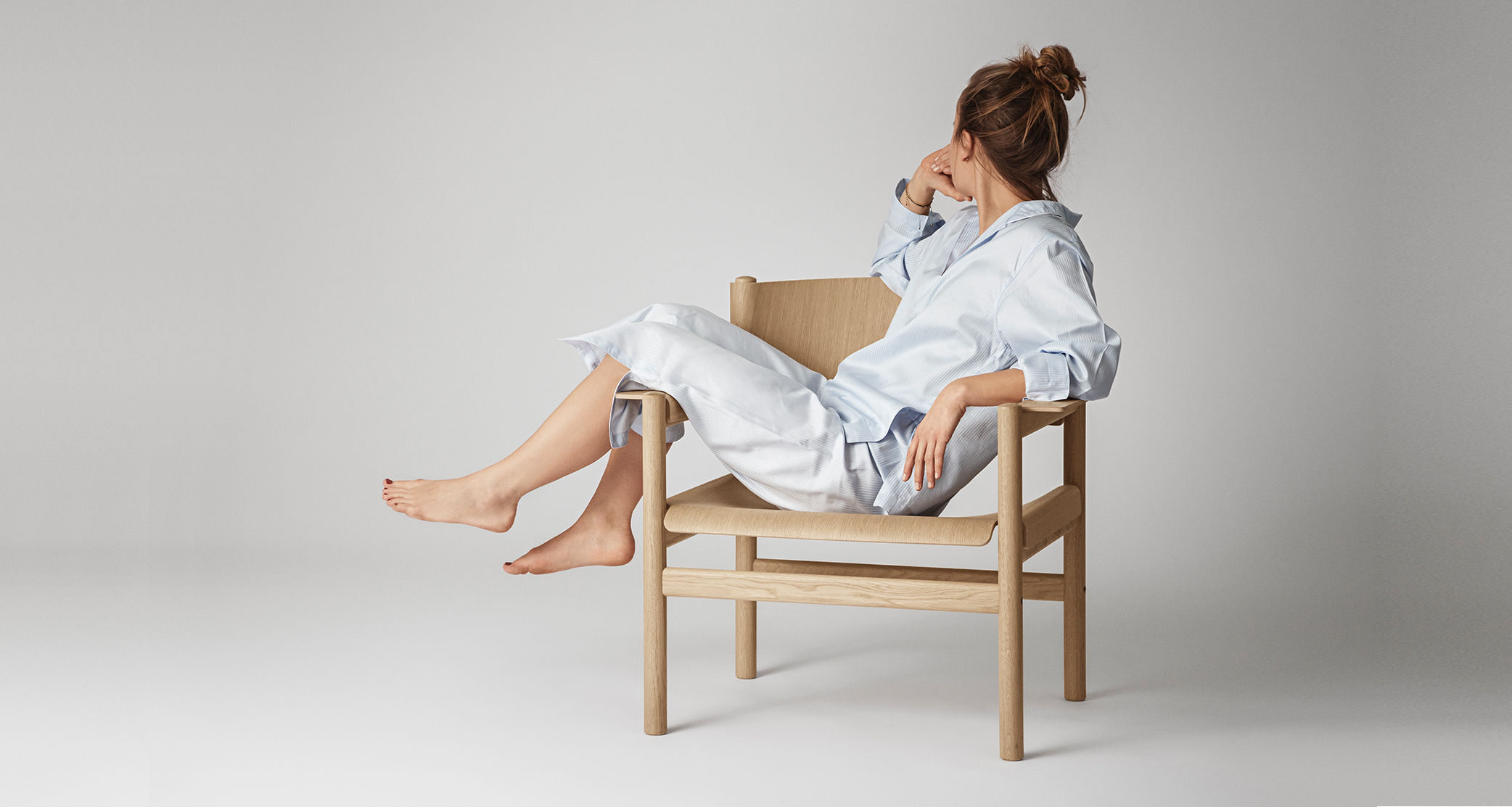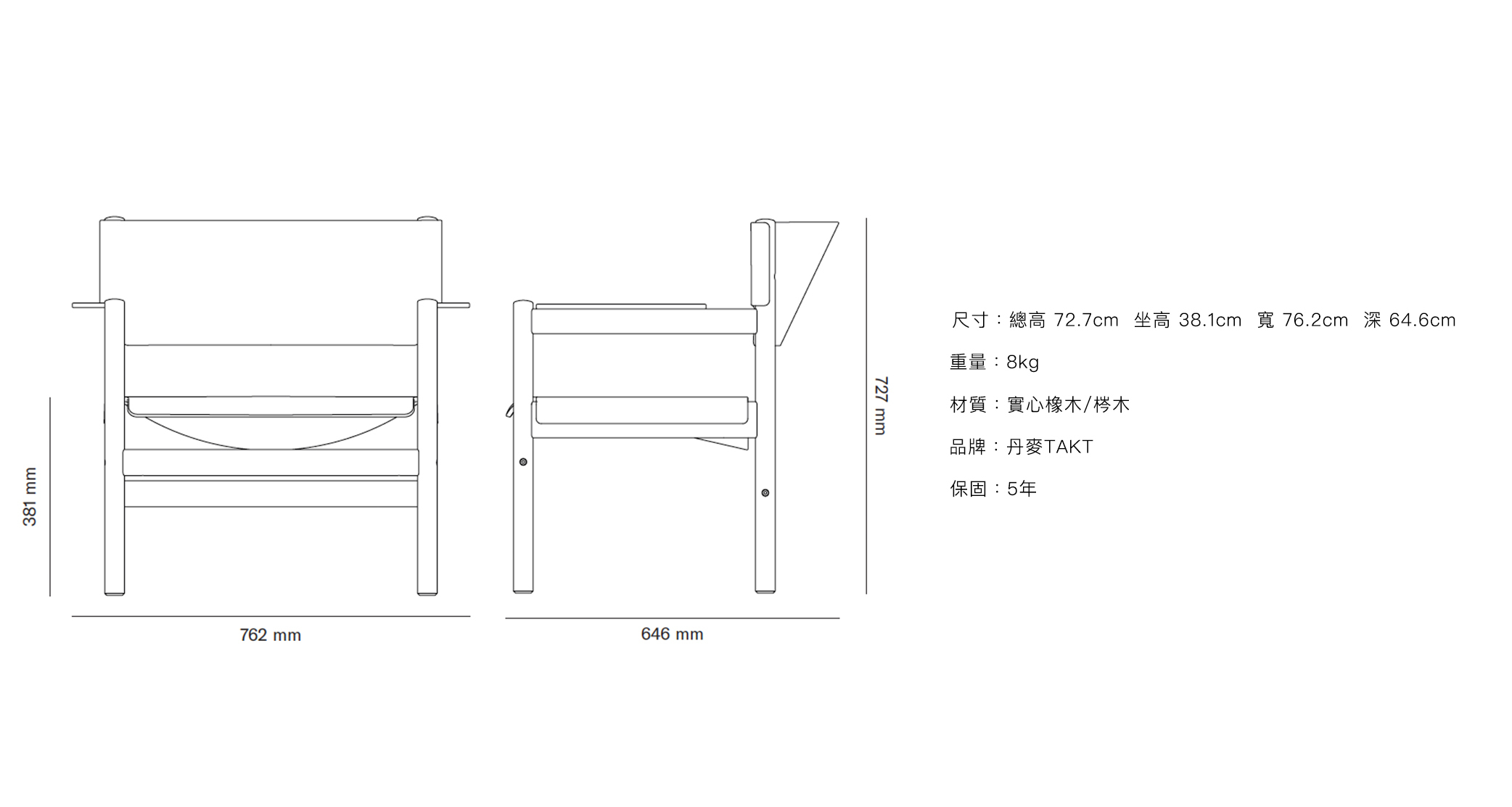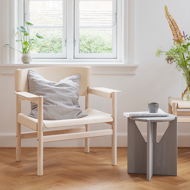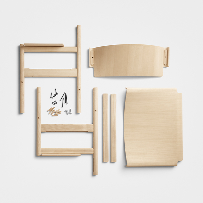 「T04 Soft Lounge Chair」的椅架由實⼼梣⽊製成:其質地堅韌,紋路漂亮、明 顯、略帶粗獷。此外,其紋路的暗淺⾊之間的⾃然變化,也真實反映了樹⽊⽣長時 的季節變化。TAKT只採⽤符合森林管理委員會(FSC,Forestry Stewardship Council)的認證⽊材,並致⼒推動⽣態系永續發展的⽬標。 「T04 Soft Lounge Chair」的表⾯塗有非常薄的天然⽔性亮光漆,除了強化保護⽊ 材本⾝的細緻結構,更便於清理。