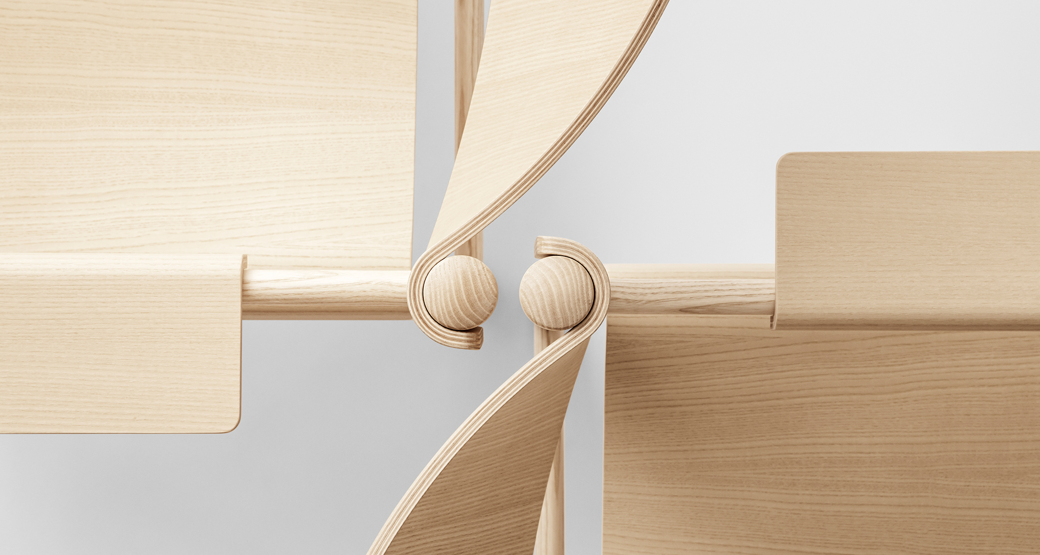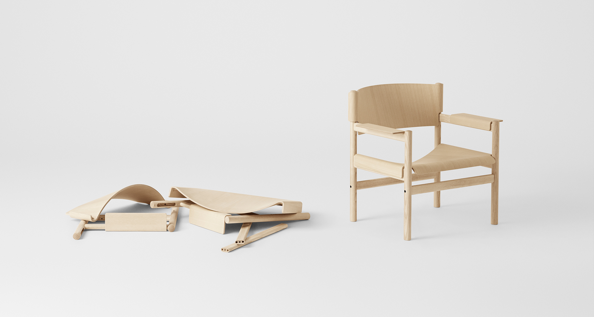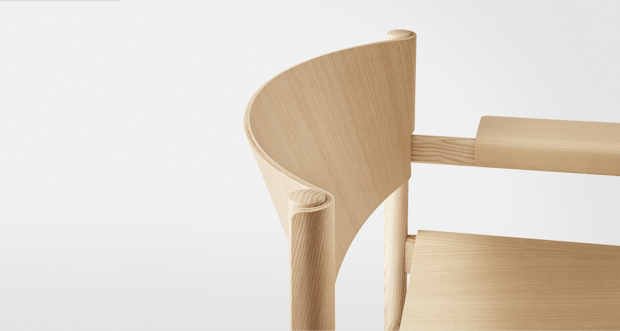 Soft Lounge Chair shows an intelligent application of molded veneer, rendering it like a cloth that surrounds the solid-ash construction. The double curves serve to strengthen the overall construction.