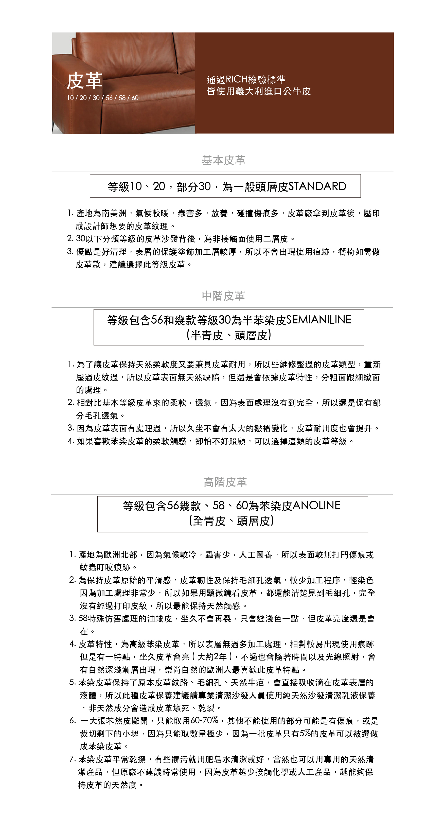 3.皮革皆達到RICH標準,對環境無害,對人體無毒。