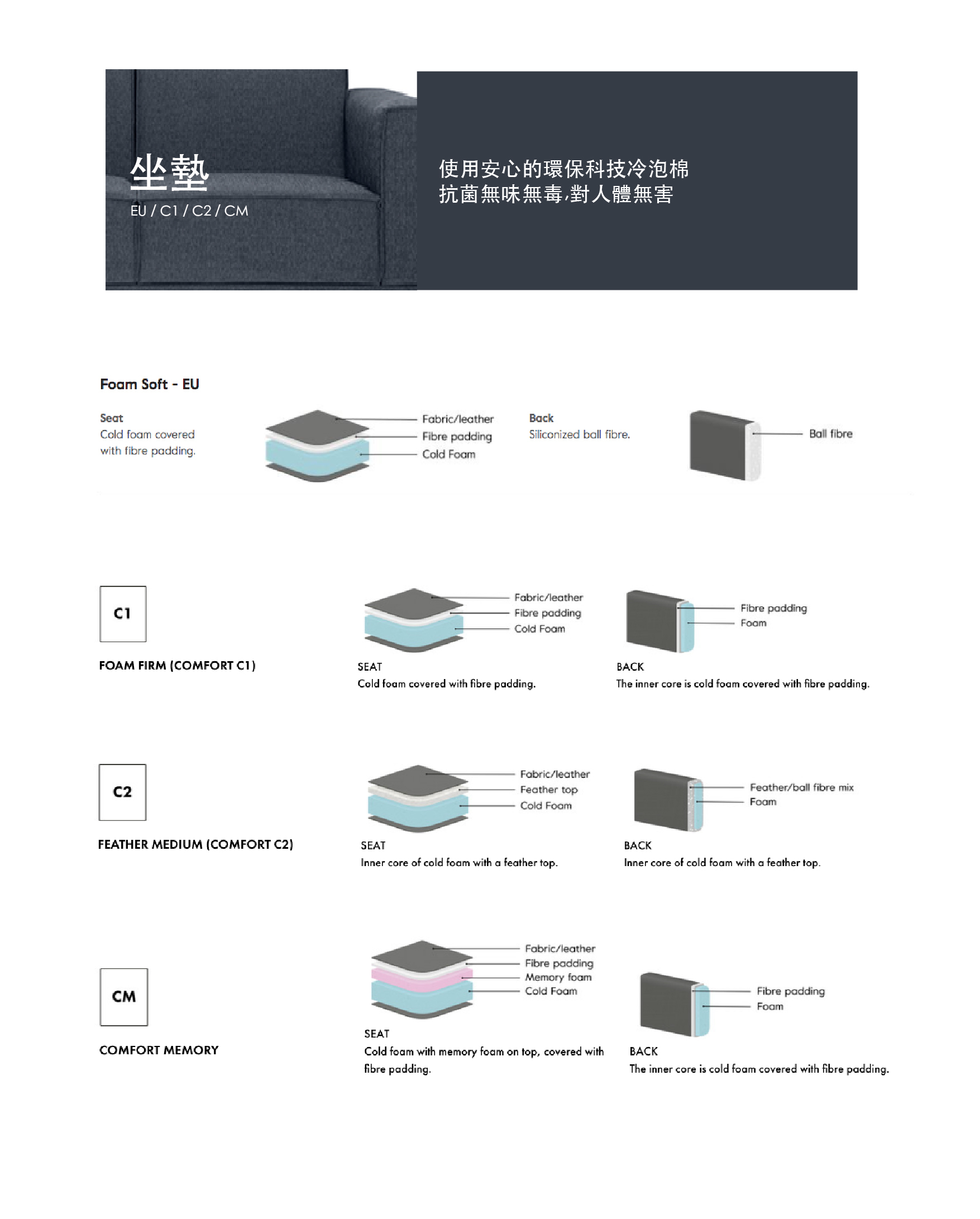 2.皮革供應商出貨至工廠前會先自行送檢以符合規定RICH標準,Furninova也會自行送檢一次以確保皮革品質,每年也會不斷更新檢測品項,已達歐盟標準。