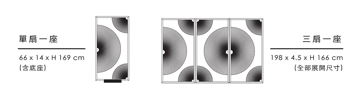 產品尺寸:198x4.5x166 cm (三扇展開),66x4.5x166 cm (單扇)