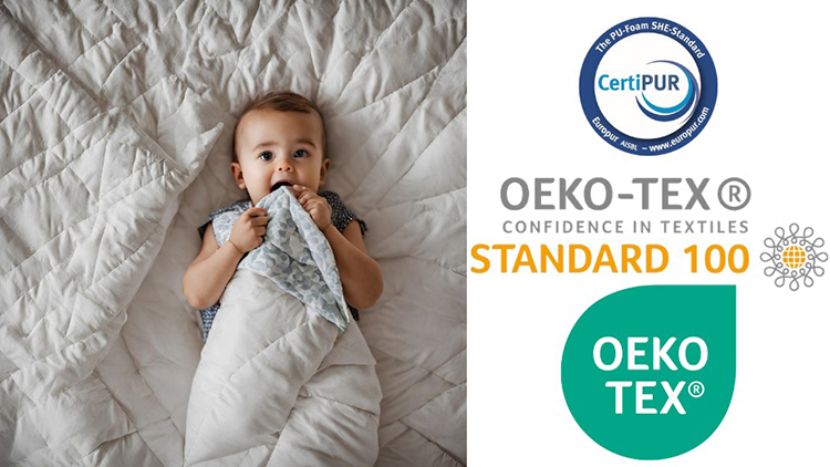 獲得AIDIMA、CETEM,原料與製程更是通過歐盟OEKO-TEX Standard 100以及CertiPUR最高純淨標準等多項歐洲品質認證,確保每張床墊無毒健康、親膚抗敏。